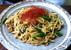 『ひるぜんやきそば』は鳥脂と味噌ダレに独特の香り付けした美味しい焼きそば。